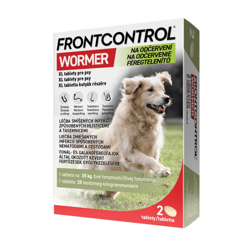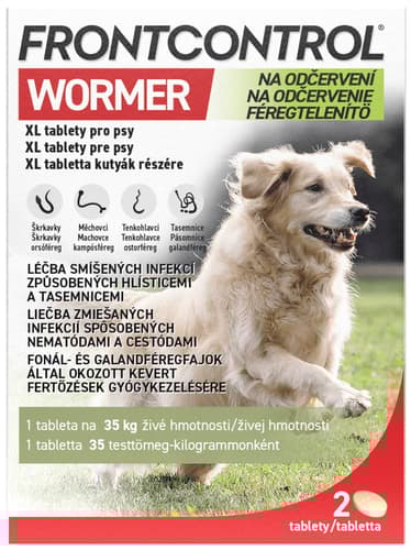 Veterinární přípravek. Účinné odčervení pro vašeho psa – snadno a spolehlivě. Frontcontrol Wormer je veterinární léčivý přípravek určený k léčbě smíšených infekcí způsobených nejčastějšími druhy vnitřních parazitů u psů – škrkavkami, měchovci, tenkohlavci a tasemnicemi. Tablety jsou vhodné pro velké psy a díky možnosti dělení jsou snadno dávkovatelné podle hmotnosti. Účinný proti těmto parazitům: Škrkavky - Toxocara canis, Toxascaris leonina, měchovci - Uncinaria stenocephala, Ancylostoma caninum, tenkohlavci - Trichuris vulpis, tasemnice - Echinococcus spp., Taenia spp., Dipylidium caninum. Dávkování: 1 tableta na 35 kg tělesné hmotnosti psa. XL tablety pro psy - lze dělit na 2 stejné části. Balení obsahuje 2 tablety.