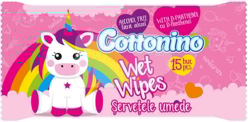 Cottonino Vlhčené ubrousky pro miminka s jednorožcem růžové