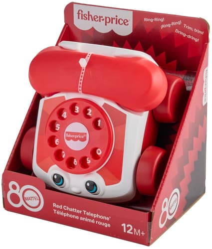 Klasická tahací hračka Fisher-Price dostává nový vzhled na počest 80. výročí společnosti Mattel. Tento ikonický telefon v červené barvě Mattelu má všechny vlastnosti, které si pamatujete – otáčecí ciferník, realistické zvuky zvonění a oči, které se pohybují nahoru a dolů, když děti telefon tahají za sebou. Tento přátelský telefon podporuje první dětské hraní na profese a zároveň pomáhá posilovat hrubou motoriku, když se děti procházejí a „volají“ všude možně.