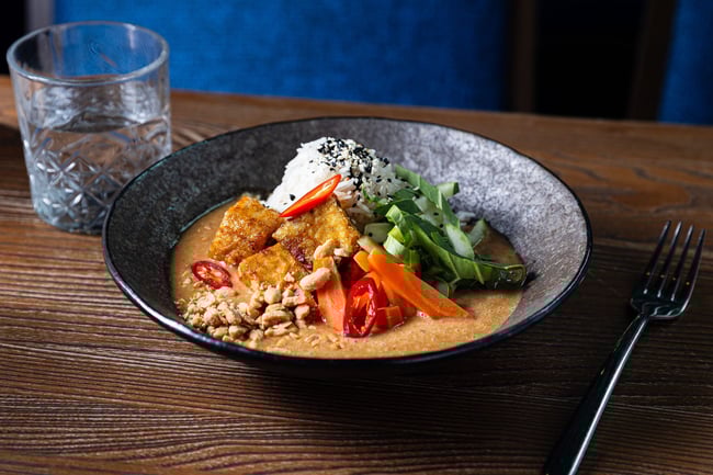Jemné tofu, voňavá rýže a výrazná arašídovo-kokosová omáčka s chilli tvoří harmonickou veganskou kombinaci, která zasytí a potěší v každém dni. Vhodné pro vegany.
