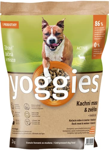 Yoggies Active Kachna a zvěřina – granule lisované za studena s probiotiky pro psy