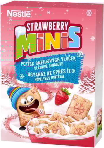 Cereální čtverečky Cini Minis s příchutí jahody obsahují celozrnnou mouku a jsou zdrojem vlákniny. Navíc obsahují také 7 druhů vitamínů a železo.
