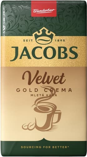 Jacobs Velvet Gold Crema je mletá káva s jemným pražením, mírnou kyselostí a nádechem ovoce. Nabízí harmonickou, vyváženou chuť s lehkými oříškovými a cereálními tóny a je dostupná ve znovu uzavíratelném praktickém obalu.