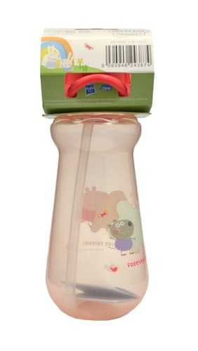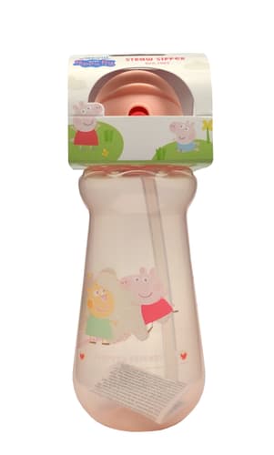 Praktická láhev s brčkem pro děti od šesti měsíců, ideální pro učení samostatného pití. S veselým motivem Peppa Pig je zábavná a pohodlná pro malé ruce.