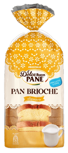 Italský brioškový toustový chléb ve tvaru klasického čtvercového bochníčku.