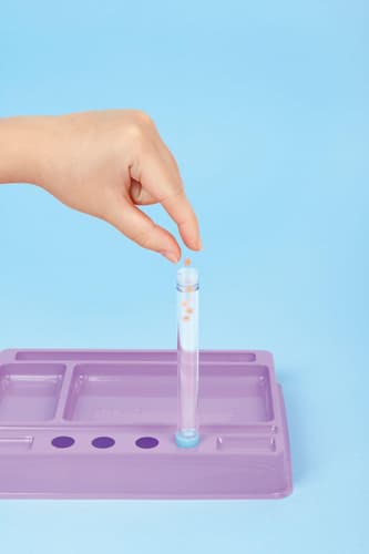 Pera postavte do přiložené podložky, nalijte dle návodu vodu a přisypte vybrané doplňky a třpytky.