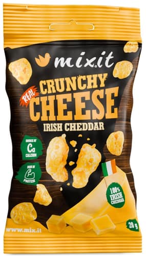 Sušený, extra křupavý snack plný bílkovin a vápníku v praktickém balení do kapsy. Neobsahuje nic jiného než irský cheddar, je tedy bez přidaných umělých látek a navíc přirozeně bezlepkový.