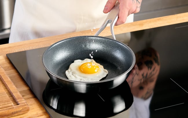 Kombinace vícevrstvé nerezové oceli s nepřilnavým povrchem zajistí perfektní tepelný výkon a zároveň vysokou míru komfortu užívání bez připalování. Proto tuto pánev doporučujeme všem, kteří chtějí vařit pohodlně a současně velmi kvalitně. Hodit se bude nadšeným začátečníkům i pokročilým kuchařům.