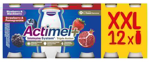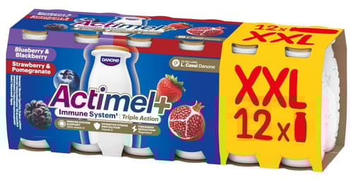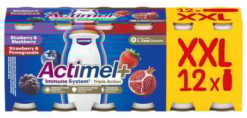 Actimel Probiotický jogurtový nápoj borůvka a ostružina, jahoda a granátové jablko 12×100 g