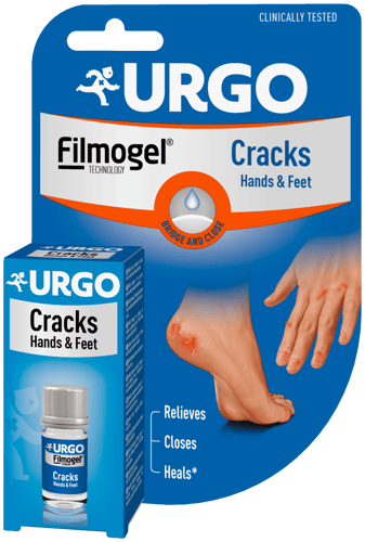 Zdravotnický prostředek. URGO FILMOGEL Praskliny je ve formě tekutého krytí na ošetření trhlin, prasklin a popraskané kůže na rukou a patách. Po aplikaci vytváří nenápadný a pružný film, který tvoří vhodné prostředí pro hojení. Jedná se o filmotvorný gel, určený k ošetření prasklin a záděr (ruce, nohy) a drobných nekrvácejících říznutí. Po aplikaci tvoří film, který chrání ránu před nepříznivými vnějšími vlivy, zabraňuje znovuotevření rány, zmírňuje bolest a urychluje hojení. Je voděodolný. Balení obsahuje 3,25 ml.
