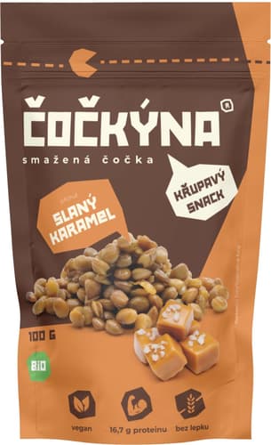 Smažená BIO čočka s příchutí slaného karamelu v praktickém uzavíratelném balení. Čočkýna je křupavá luštěnina s bílkovinami a vlákninou, je skvělou alternativou k tradičním snackům. Je složena pouze z čočky, kokosového oleje a koření. Na čočkýné si pochutnají vegani, vegetariáni i sportovci.