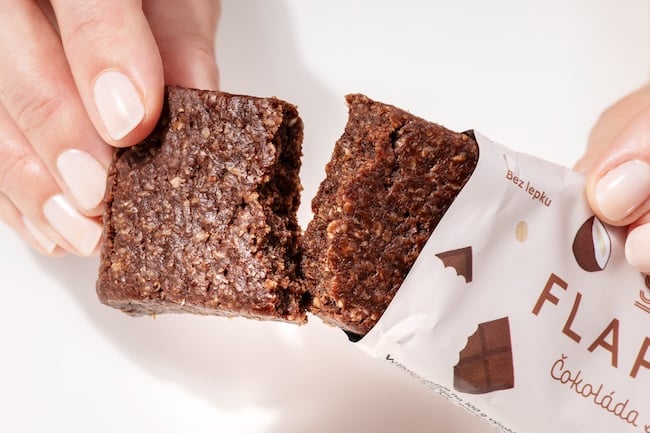 Flapjack s příchutí čokolády a kokosu je tyčinka z bezlepkových ovesných vloček, lískooříškové pasty a másla ghí. Flapjack je vláčný a sytý. Díky pečlivě vybraným přírodním surovinám navíc neobsahuje žádná sladidla ani palmový tuk.