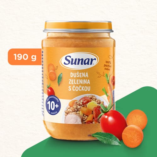 Sunar příkrm dušená zelenina s čočkou je ideální volbou k obědu nebo večeři pro děti od ukončeného 10. měsíce. Bez přidané soli, ze 100 % poctivých surovin v té nejvyšší baby kvalitě.