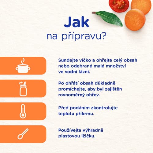 Používejte výhradně plastovou lžičku. Je důležité dodržovat návod na přípravu a podmínky skladování, aby nedošlo k ohrožení zdraví dítěte.