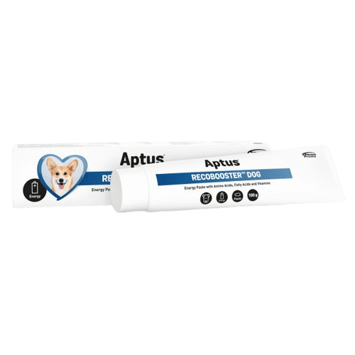 RecoBooste Dog je veterinární doplněk stravy pro psy. Energetická pasta s obsahem aminokyselin, tuků a vitamínů. Doporučeno pro psy, které potřebují dodatečnou energii, jako jsou psi s dočasně sníženou chutí k jídlu nebo aktivní psi. Pasta se snadno podává. Doporučené množství pokrývá přibližně denní potřebu energie při odpočinku. Doplňkové krmivo pro psy. Balení obsahuje 100 g.