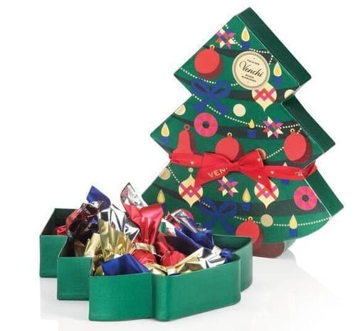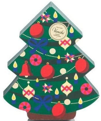 Dárková krabička ve tvaru stromečku s vánoční kolekcí čokolády Venchi. V srdci kouzelného lesa vznikla nová limitovaná vánoční kolekce, kterou navrhla australská umělkyně Anna Higgie. Čokoláda Venchi je známá svou kvalitou a reprezentující tradici a inovaci, které činí italskou čokoládu jedinečnou. Řemeslní čokolatiéři pečlivě vybírají nejlepší kakaové boby a používají tradiční techniky k výrobě čokolád.
