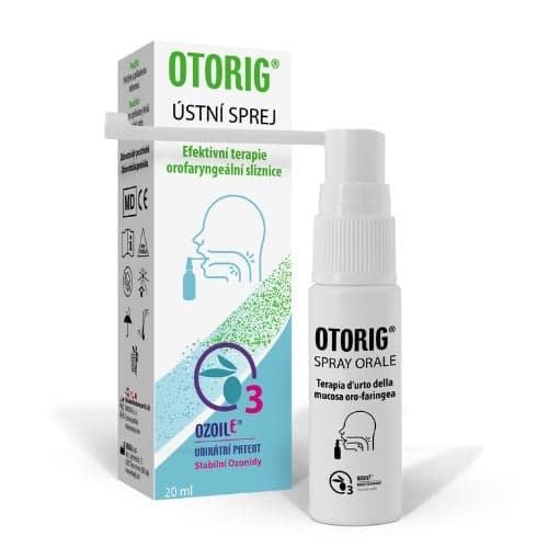 Zdravotnický prostředek OTORIG je unikátní 100% přírodní sprej se stabilními Ozonidy, který účinně působí jako prevence na sliznici úst a hrdla, při zánětu, otoku, podráždění, svědění a potížích s polykáním. Vytváří ochranný lipidový film proti vnějšímu podráždění a proti působení nepříznivých vlivů životního prostředí, brání negativní změně mikrobioty. 100% přírodní, bez lepku, barviv, alergenu, alkoholu. Vhodný pro děti, dospělé a starší osoby. Balení obsahuje OTORIG ústní sprej 20 ml.