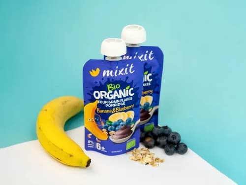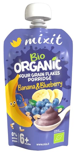 Mixit kapsička vhodná pro děti od 6. měsíce s BIO banány, BIO borůvkami a BIO vločkami z ekologického zemědělství. Kapsička je znovu uzavíratelná, připravená na cesty i na doma a není potřeba ji ohřívat.