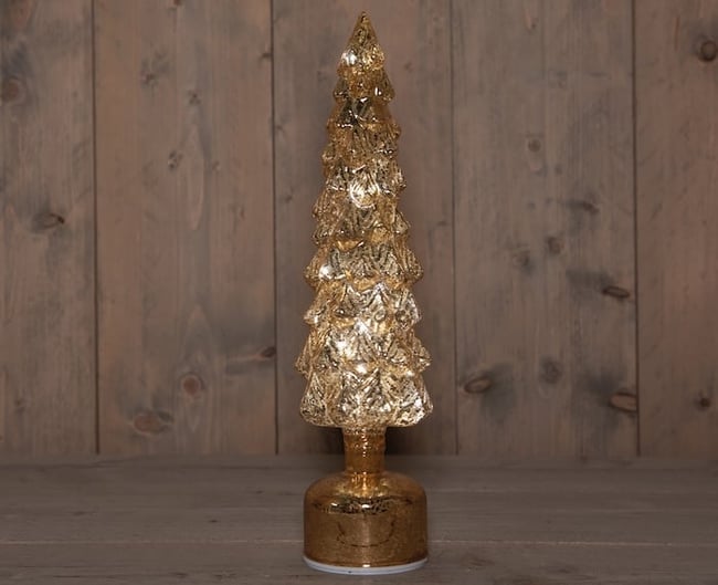 Svítící vánoční dekorace v podobě otáčivého zlatého skleněného stromečku dodá vašemu interiéru luxusní a slavnostní nádech. Stromeček je vybaven 15 LED diodami v teple bílé barvě a díky funkci otáčení působí ještě výrazněji. Praktický časovač zajistí 6 hodin nepřetržitého svícení bez nutnosti ručního ovládání.