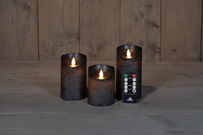 Anna's Collection Svítící vánoční dekorace s časovačem – voskové černé svíčky s pohyblivým plamenem a dálkovým ovládáním