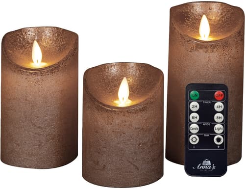 Anna's Collection Svítící vánoční dekorace s časovačem – voskové hnědé svíčky s pohyblivým plamenem a dálkovým ovládáním
