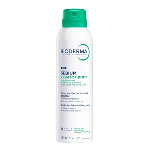 Bioderma Sébium Kerato+ Body 360° sprej účinně redukuje nedokonalosti na zádech, hrudníku a ramenou a zároveň okamžitě zklidňuje pokožku. Díky kombinaci kyseliny salicylové, niacinamidu a extraktu z šeříku pomáhá působit proti pupínkům i jizvám po akné. Unikátní technologie Fluidactiv™, inspirovaná přístupem NAOS Ekobiologie, biologicky normalizuje kvalitu kožního mazu a brání ucpávání pórů. Sprej má nelepivou, nemastnou texturu, nezanechává stopy na oblečení a je dermatologicky testován. Hlavní benefity: Redukuje nedokonalosti a pupínky na těle již po 7 dnech. Pomáhá vyhlazovat stopy po akné a jizvy. Okamžitě zklidňuje pokožku. Fyziologické pH, dermatologicky testováno. Balení obsahuje 150 ml.