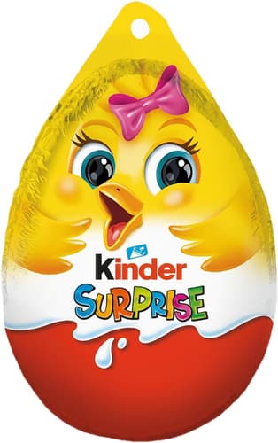 Závěsné velikonoční Kinder vajíčko pokryté mléčnou čokoládou s překvapením uvnitř. Vajíčko je možné zavěsit jako dekoraci.