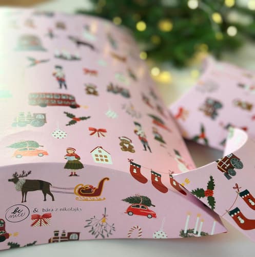 Be Nice EKO Vánoční krabička Anglická pohádka – růžová malá (14×13,5×4 cm)