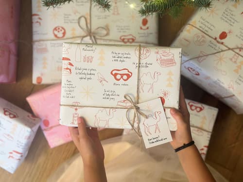 Vyrobený z kvalitního recyklovaného papíru v České republice, je pevný a odolný, takže se při balení netrhá. Na spodní straně má praktickou mřížku pro přesné střihy, díky které zůstane každý dárek perfektně zabalený.