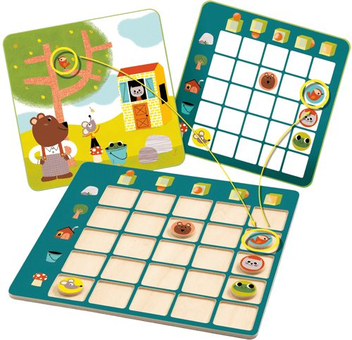 Stačí vybrat kartičku, umístit figurky na správná místa a pak kartu otočit. Děti se učí vnímat vztahy „nad, pod, vedle či uvnitř“ a hravou formou si upevňují orientaci v prostoru.