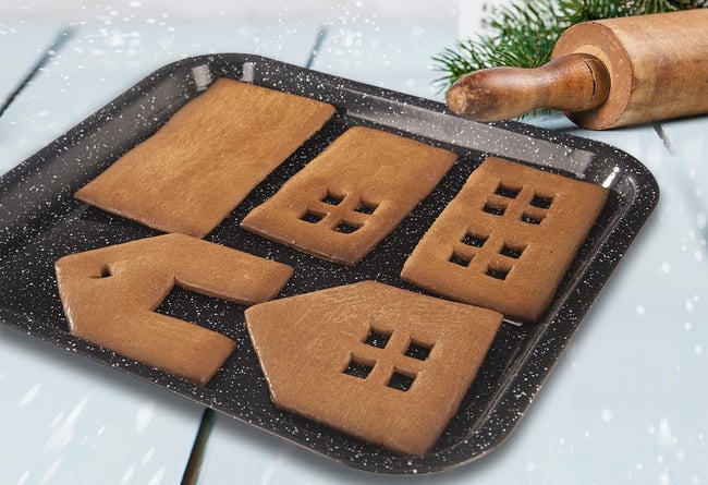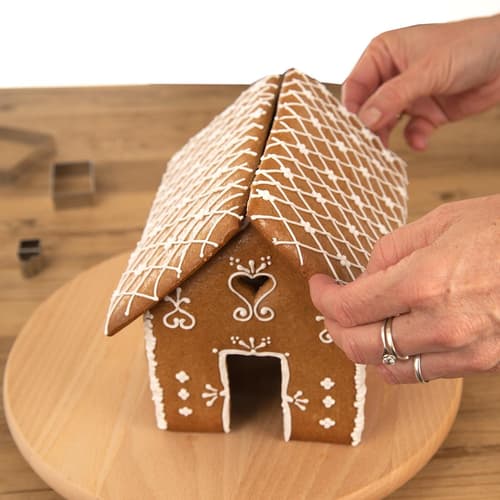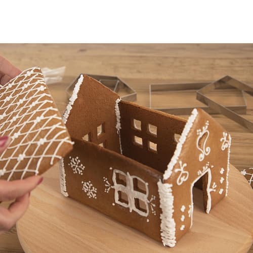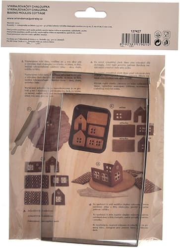 Sada vykrajovátek vám pomůže vytvořit 3D perníkovou chaloupku. Podle návodu vykrojíte jednotlivé části a po upečení je sestavíte – spojíte polevou. Ozdobíte podle své fantazie.