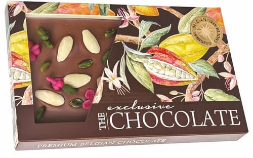 The Chocolate Formovaná mléčná čokoláda s mandlemi, pistáciemi a sušenými růžemi