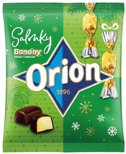 Fondánové cukrovinky s banánovou příchutí máčené v hořké čokoládě. Salonky jsou jednotlivě baleny.