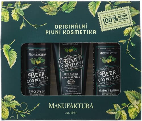 Originální sada tří miniatur nabízí výběr bestsellerů z oblíbené pivní kosmetiky od Manufaktury. Všechny obsažené produkty péče o vlasy, tělo a ruce jsou doprovázeny výjimečnou, hořko-sladkou vůní.