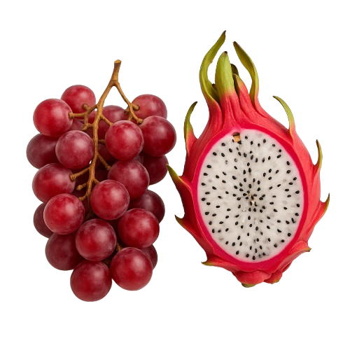Sycený nealkoholický nápoj s příchutí červených hroznů a dračího ovoce s přídavkem vitaminů a minerálů. Pasterováno.
