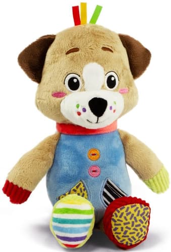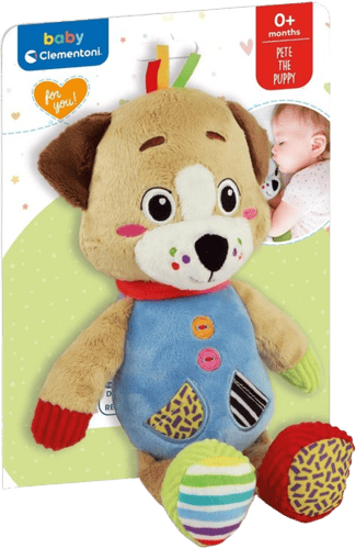 Roztomilý plyšový pejsek z kolekce Clemmy Baby je ideální první kamarád pro miminko. Je vyroben z různorodých měkkých materiálů, které podporují rozvoj hmatového vnímání a napomáhají multismyslové stimulaci. Součástí je i malé kousátko, které uleví od nepohodlí při prořezávání zoubků. Hračka je bezpečná, příjemná na dotek a lze ji jednoduše prát v pračce.