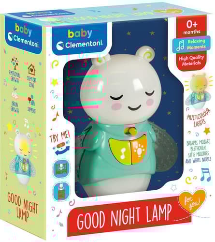 Lampička nabízí 2 režimy – melodie a světelné sekvence, při nichž světlo postupně zhasíná po pěti minutách, až se děťátko ponoří do spánku. Díky tlumenému osvětlení mohou rodiče dítě zkontrolovat, aniž by ho probudili. Lampičku lze snadno zavěsit na postýlku nebo postavit na noční stolek.