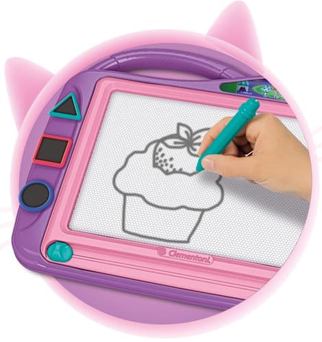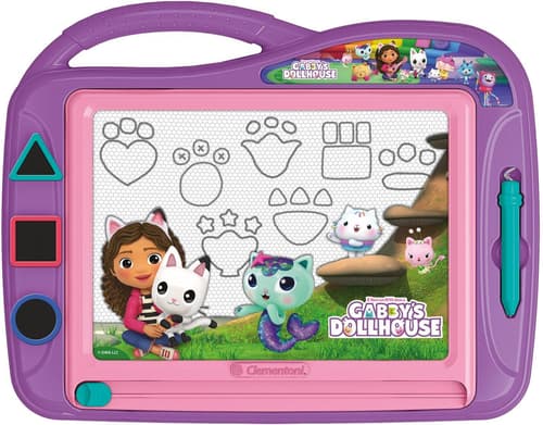 Kouzelná magnetická kreslicí tabulka s motivem Gabby’s Dollhouse umožní dětem kreslit, razítkovat a tvořit bez konce. Pomocí přiloženého magnetického pera a tří razítek mohou vytvářet nejrůznější tvary, obrázky i písmena. Když je tabulka plná, stačí zatáhnout za páčku a kreslení může začít znovu. Ideální hračka, která rozvíjí kreativitu, představivost i jemnou motoriku.