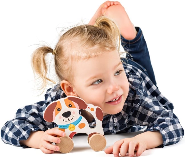Ideální společník pro první hraní – děti si s pejskem mohou jezdit po podlaze, trénovat koordinaci a užívat si hru s hračkou, která padne skvěle do ruky.