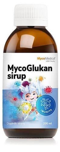 Doplněk stravy. MycoGlukan je doplněk stravy ve formě přírodního sirupu. Je ideální volbou pro všechny děti pro podporu imunity. Sirup obsahuje vysoké množství přírodního β-1,3/1,6 D-glukanu získaného ze sladkovodní řasy Euglena gracilis. Čisté betaglukany se často podávají ve spojení s extrakty hub, proto je přidána houba Reishi, která podporuje přirozenou obranyschopnost organismu. MycoGlukan navíc obsahuje důležité složky, jako je extrakt z šípku, vitamín C, zinek, jód a vitamín D3. Vitamín C a šípek jsou silné antioxidanty, které chrání buňky před oxidativním stresem. Vitamín C, D3, zinek přispívají k normální funkci imunitního systému. Sirup má příjemnou chuť a je vhodný pro dlouhodobé užívání. Neobsahuje kofein, lepek, konzervační látky, barviva. Nepřekračujte doporučené denní dávkování. Uchovávejte mimo dosah dětí. Doplňky stravy nejsou náhradou pestré a vyvážené stravy. Balení obsahuje 200 ml (=40 dávek á 5 ml).