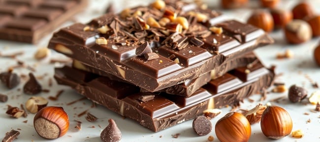 Cukr, kakaové máslo, kakaová hmota, plnotučné sušené mléko, lískové ořechy (10%), emulgátor: sojový lecitin, přírodní vanilkové aroma.