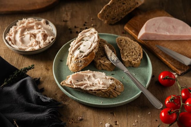 - z částí s méně ideálním tvarem, které nevyužijeme pro krájené šunky vyrábíme šunkovou pěnu