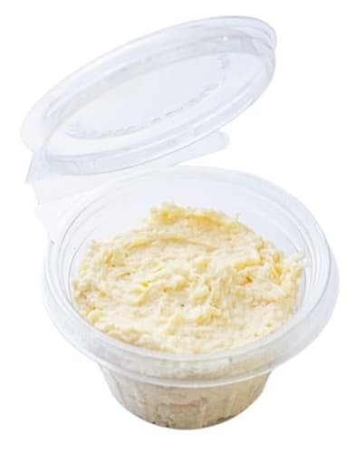 Sýr 35,4 % (kravské pasterizované MLÉKO, jedlá sůl, MLÉČNÉ startovací kultury, mikrobiální syřidlo), mléčná pomazánka (zakysaná SMETANA, sušené MLÉKO, sušená SYROVÁTKA, škrob, jedlá sůl), majonéza (řepkový olej 68 %, pitná voda, pasterovaný VAJEČNÝ žloutek 5 %, kvasný ocet lihový, cukr, škrob, jedlá sůl, HOŘČIČNÁ semínka, koření, antioxidant: kalcium-dinatrium EDTA), česnek 1,8 %, jedlá sůl, pepř bílý mletý