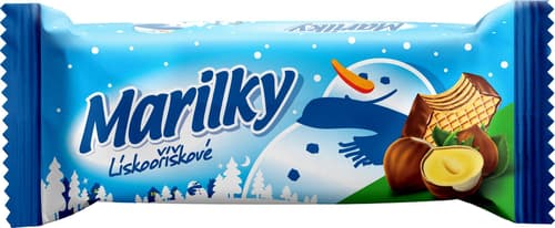 Oplatka Marilky s lískooříškovou náplní, s lískooříškovou náplní, je dobrým zdrojem energie a můžete si ji zabalit na jakoukoli cestu či jako svačinu do práce. Oplatky jsou ve vánočním přebalu.