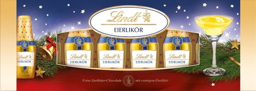 Lindt Vánoční čokoládové lahvičky plněné vaječným likérem