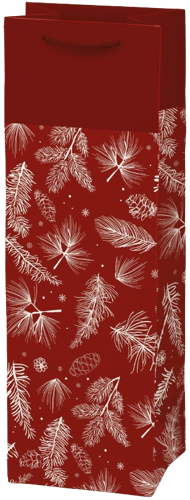 Papírová dárková taška s vánočním motivem bílých větviček je ideální pro zabalení lahví nebo vyšších dárků.