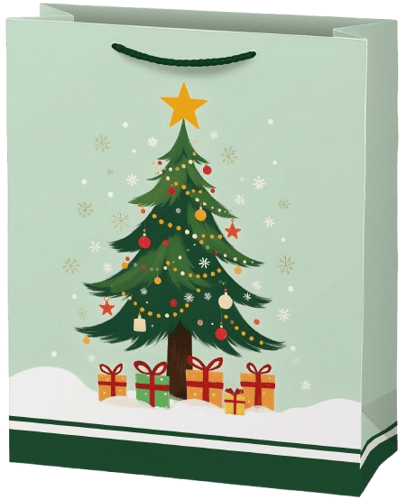 Papírová dárková taška s motivem vánočního stromečku je ideální pro středně velké dárky.