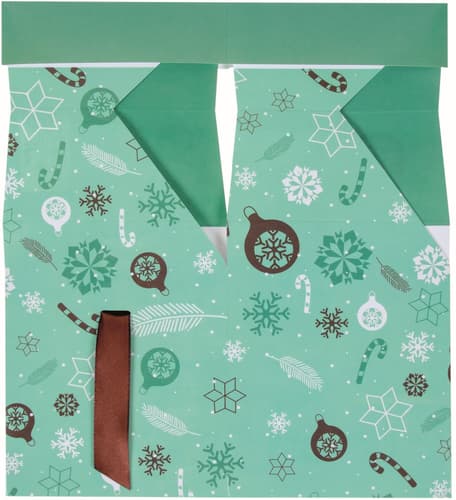 Dárková papírová krabička se světle zeleným vánočním motivem bude skvělým pomocníkem pro balení menších dárků. Je v rozloženém stavu, nezabere místo na skladování, nepomačká se, a díky svému designu je složená jedním pohybem během sekundy.