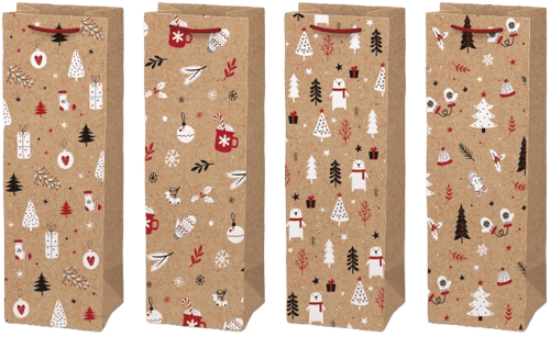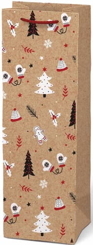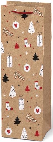 Papírová dárková taška s vánočním motivem je ideální pro zabalení lahví nebo vyšších dárků.