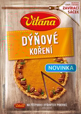 - Ingredience: 200 g sušenek, 80 g másla, 1 ČL skořice, 600 g čerstvého sýra, 200 g zakysané smetany, 100 g cukru, 240 g dýňového pyré, vanilkový cukr Vitana, špetka soli, 6 g dýňového koření, 3 vejce, 1 PL škrobu